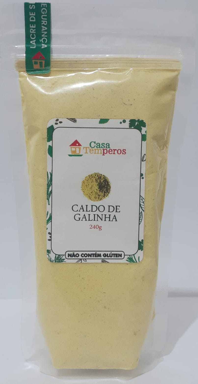 Sal, amido de milho modificado, açúcar, aroma idêntico ao natural de galinha, óleo de soja, alho em pó, cebola em pó, cúrcuma, salsa, aipo, realçador de sabor, glutamato monossódico, antioxidante, fosfato tricálcico e conservante ácido cítrico.